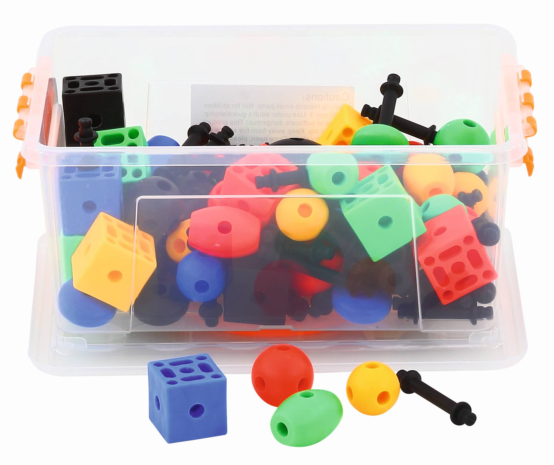 140 delen 3-D vormen in verschillende kleuren & vormen in een opbergdoos. Kubus 3×3 cm.
