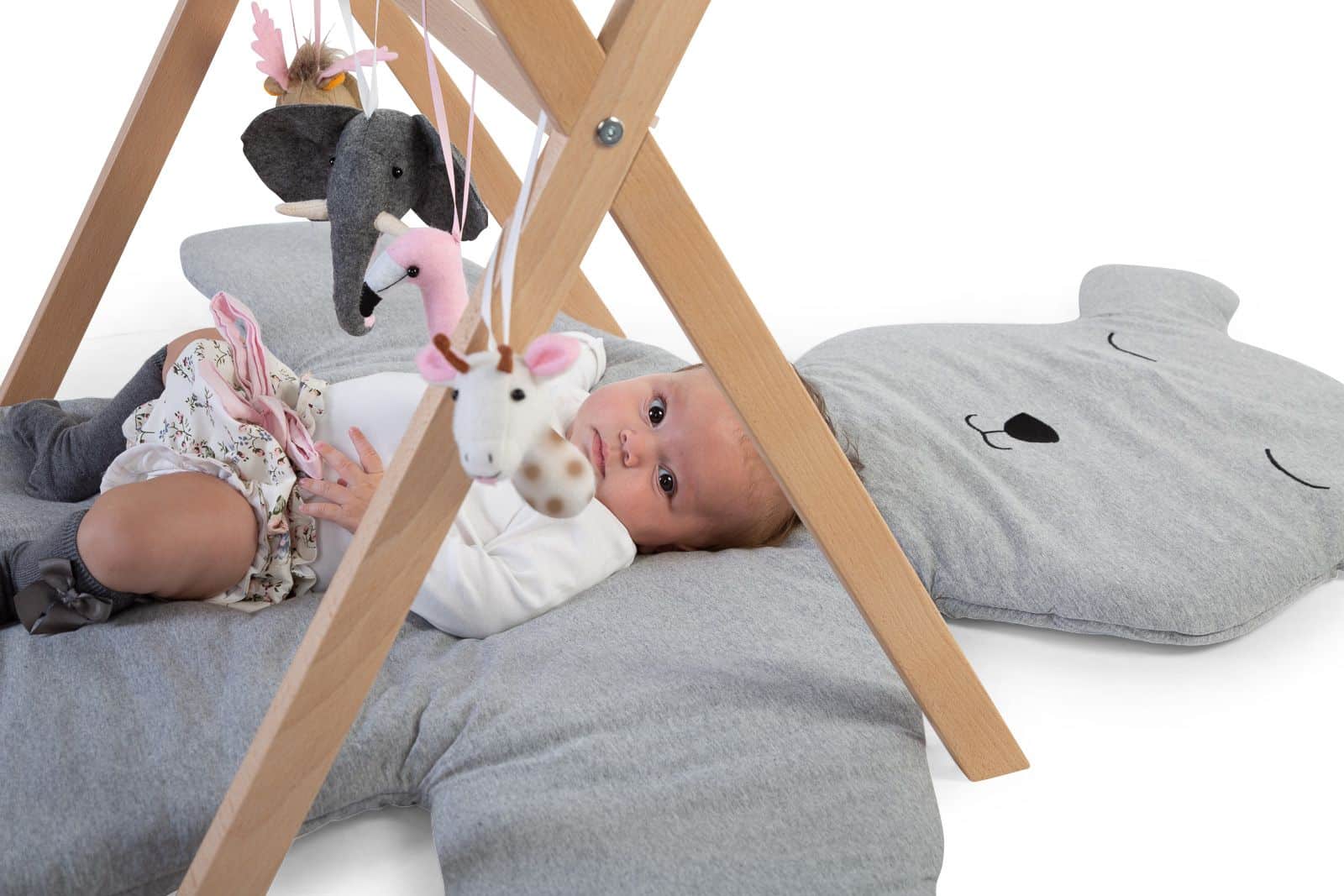 Jouw baby zal uren plezier beleven dankzij onze tipi baby gym in wit of natuur. Aan het stevige rekje kan je verschillende speeltjes hangen waar de baby mee kan spelen. Een speelboog is perfect voor het ontwikkelen van de motoriek en oog-hand coördinatie van jouw baby.