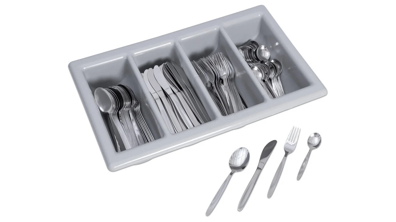 Bestekset 241-delig incl. bestekbak. Complete RVS-set voor kantine of schoolkeuken.