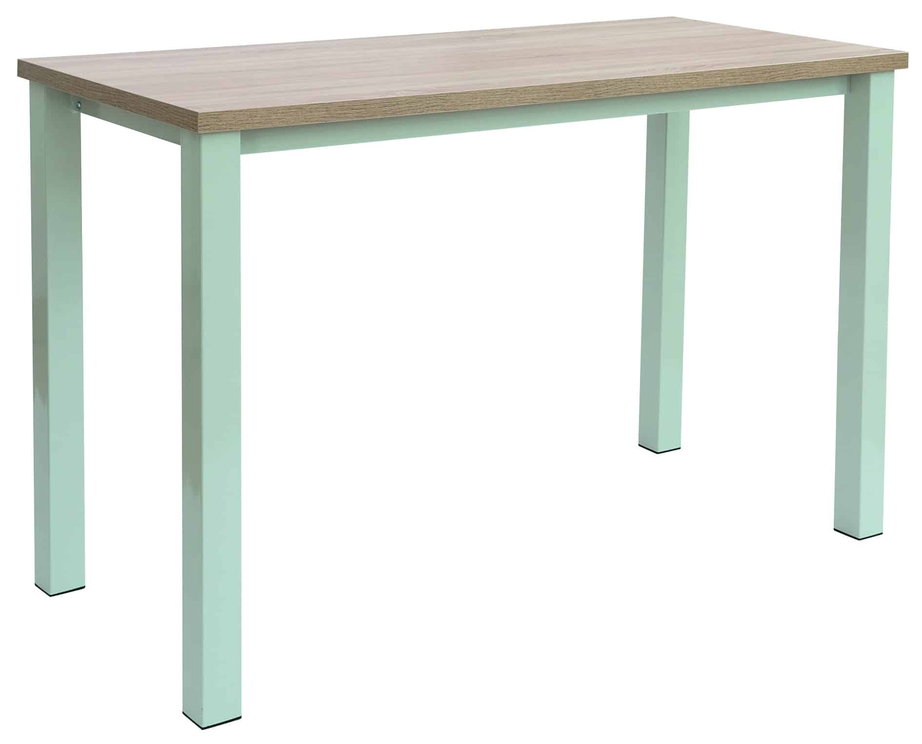 Tafelpoten van 8x8cm in lichtgrijs RAL 7035 evenals de dwarsbalken welke voor extra stabiliteit zorgen van 6x2cm. Decor blad; Eiken, Wit, Ahorn of Beuken.