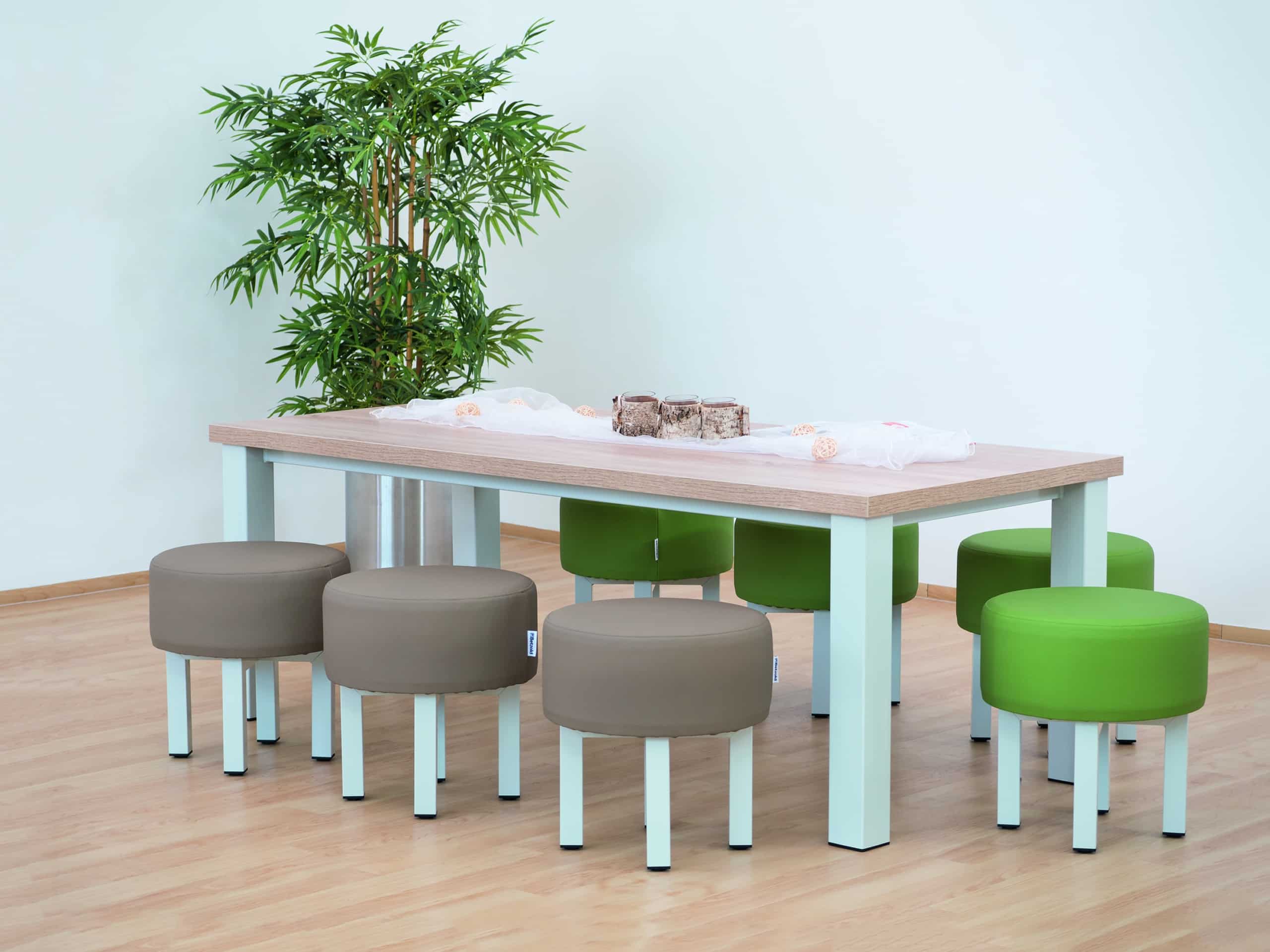 Tafelpoten van 8x8cm in lichtgrijs RAL 7035. Decor blad; Eiken, Wit, Ahorn of Beuken.