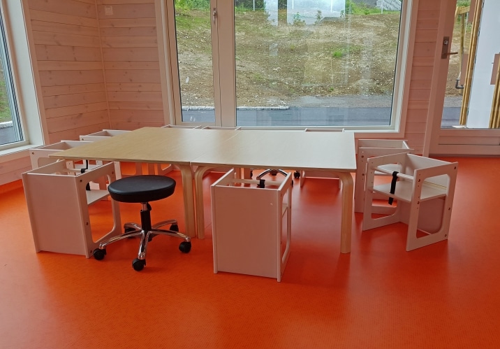 FSC Berken multiplex, onverwoestbare box stoel voor veilig laag zitten van de kleintjes. Zitting in 3 hoogtes verstelbaar; 26, 28 en 30cm zithoogte.