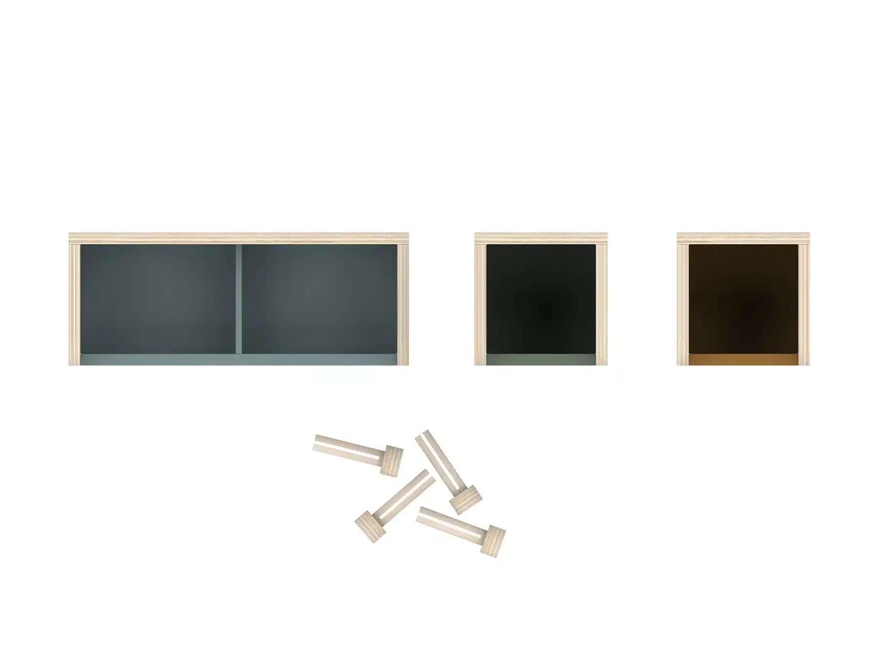 2 delen: 9 x 9,6 x 11 cm, 1 deel: 23 x 9,6 x 6,5 cm. – 3-dlg set.