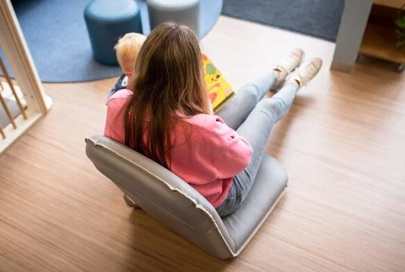 De bekleding is gemaakt van kunstleer wat robuust & hygiënisch is voor in de kinderopvang. De onderkant van de hoes is gemaakt van antislip PVC-materiaal, zodat deze niet verschuift en ook buiten kan worden gebruikt. Het binnenwerk van de vloerstoel is van polyether foam met een geïntegreerd framewerk. Door het scharniermechanisme heeft het kussen 40 standen voor de juiste zithouding en biedt het hierdoor een onafhankelijke ruggensteun. De comfort grondstoel is voorzien van een handvat om hem makkelijk te kunnen dragen.