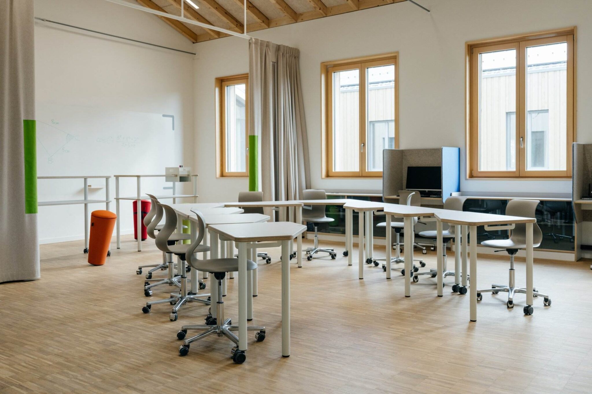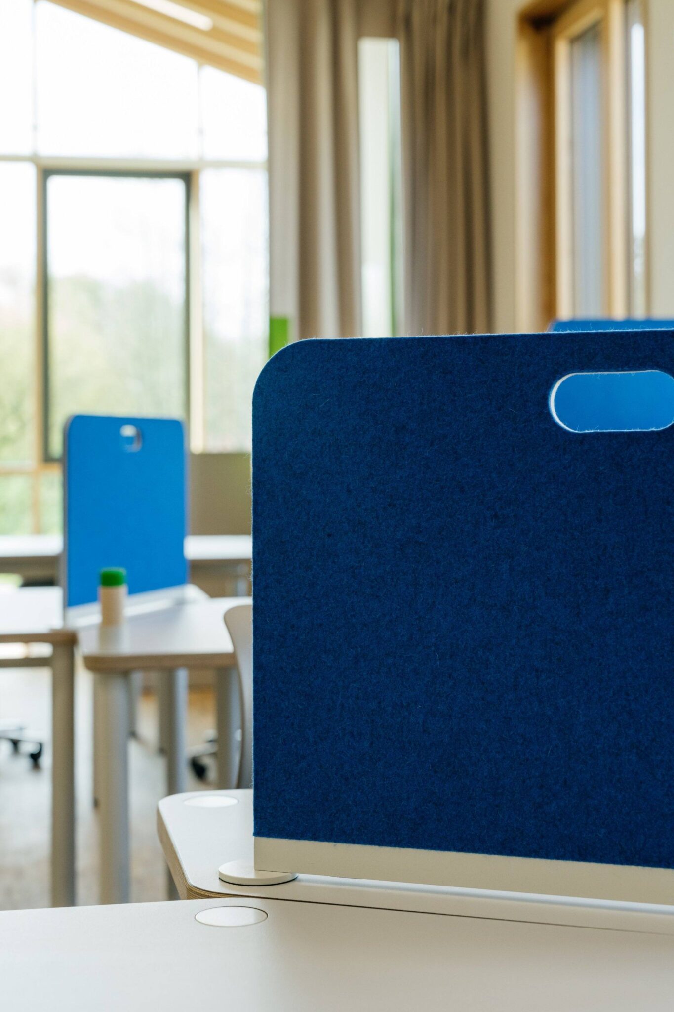 Onze concentratie schermen maken we op maat en geheel naar wens, groot als een volledig huisje waar je met je hoofd “onder” kunt zitten of 3-zijdig klein enkel om het werk af te scheiden. Met ingefreesde sleuf om hem over het blad te schuiven voor extra stabiliteit of gewoon los te plaatsen, net waar de behoefte van school ligt. Ze zijn gemaakt van vilt in diverse mooie kleuren en daardoor geluidsabsorberend.