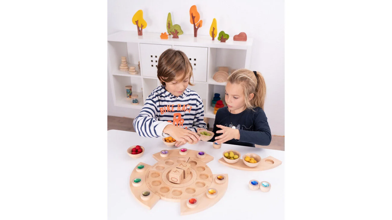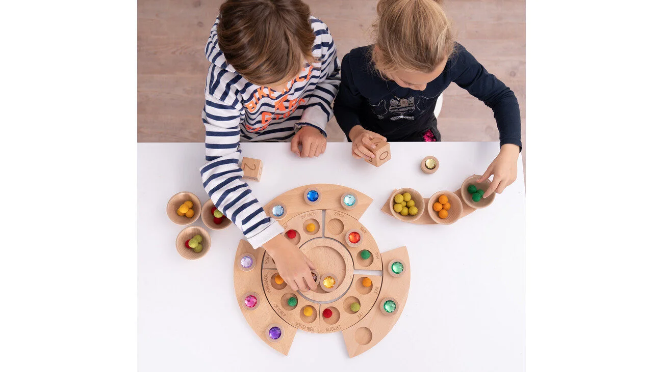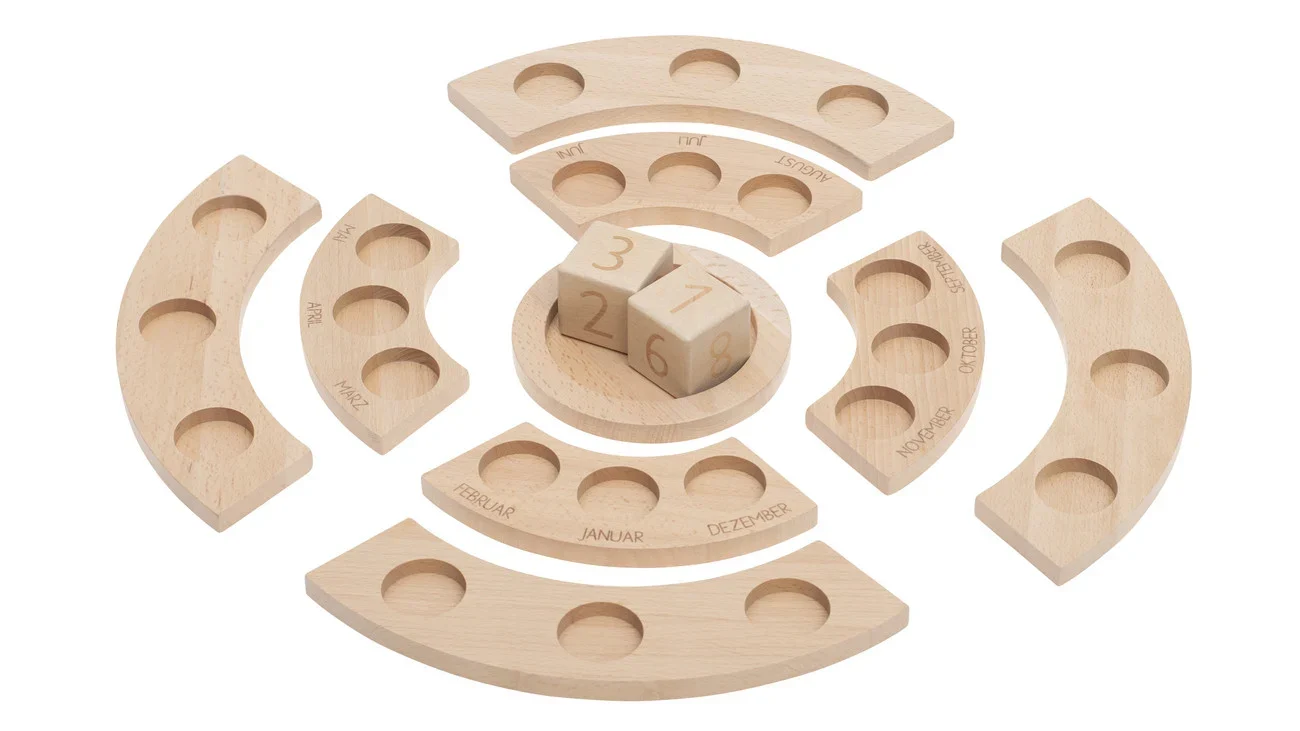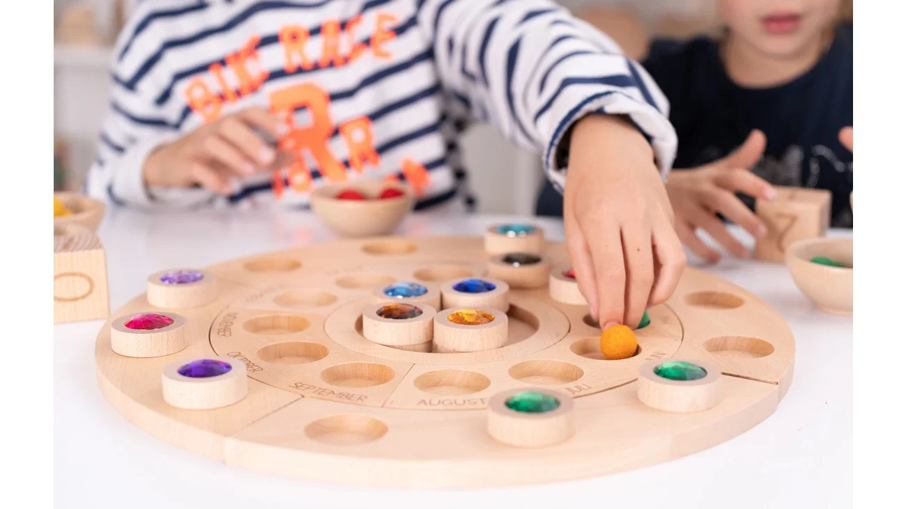 Cyclus van seizoenen beuk. Houten leermiddel dat jaarcycli inzichtelijk maakt.