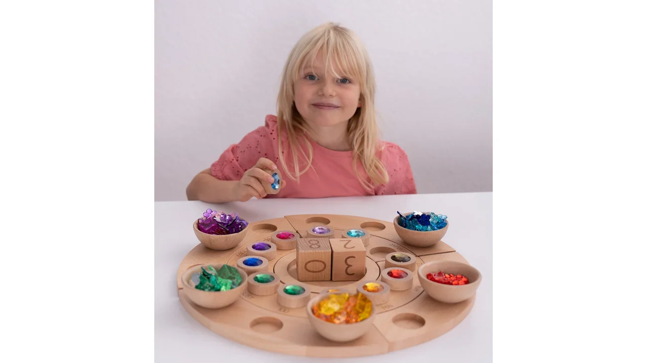 Ø 44,5 cm, de 24 verdiepingen nodigen uit om te versieren met stenen en dergelijke, terwijl de aparte platte houten schaal in het midden bijvoorbeeld gevuld kan worden met seizoensgebonden schatten.