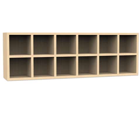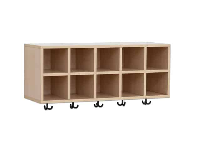 Hoogte is 39cm en de diepte 23cm. Met 6 (B 60cm), 8 (B 80cm), 10 (B 100cm) of 12 (120cm) handige opbergvakken optioneel aan onderzijde voorzien van jashaken.