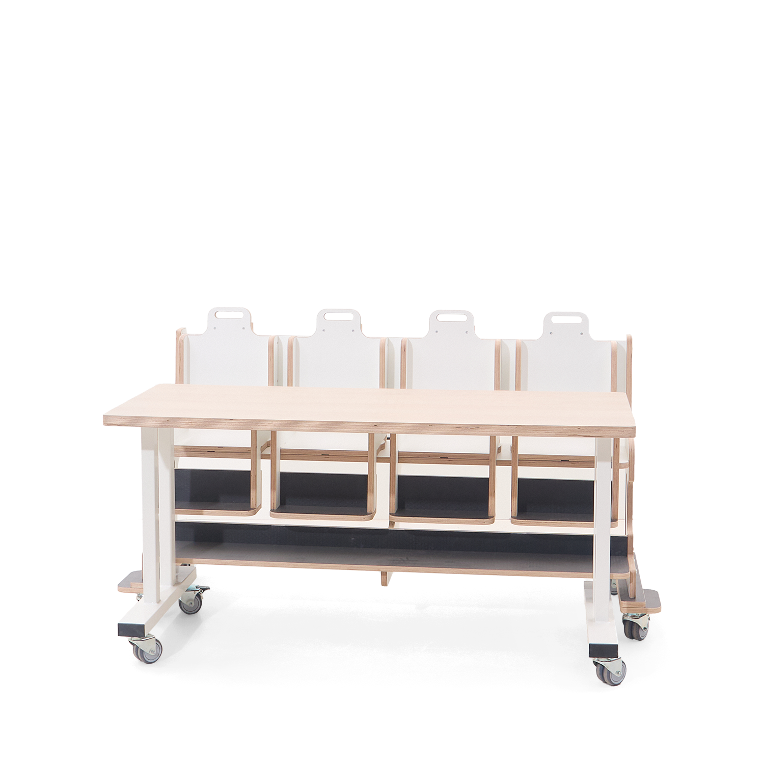 Premium Ergo Bank met geremde wielen en handig magneet koppel systeem voor aan de bijpassende Premium ergotafel.
