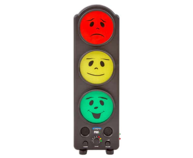 Geluidsmeter stoplicht klas. Meet geluidsniveau visueel met stoplichtfunctie, helpt rust te bewaren in de klas.