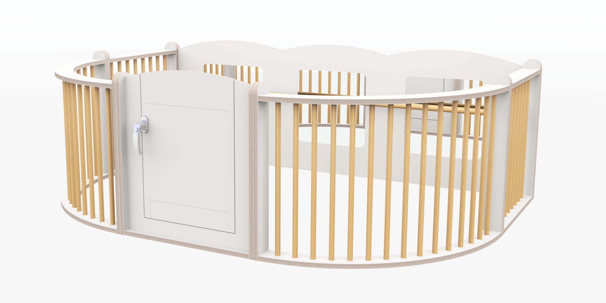 Mooie spijlen grondbox voor extra veiligheid, baby’s kunnen niet bekneld raken.