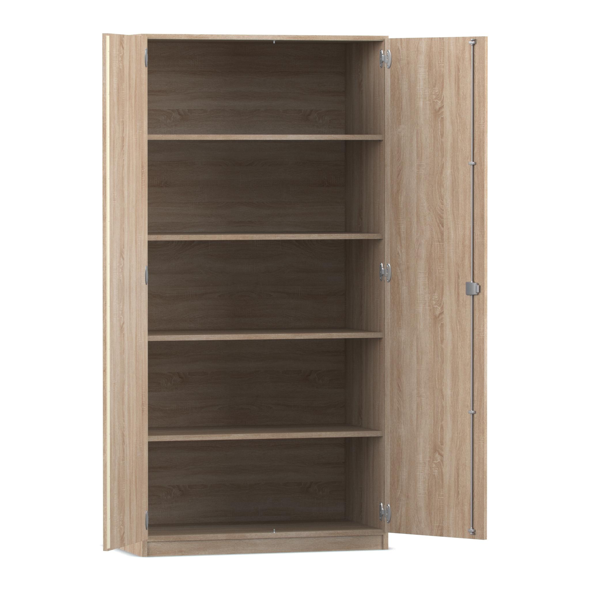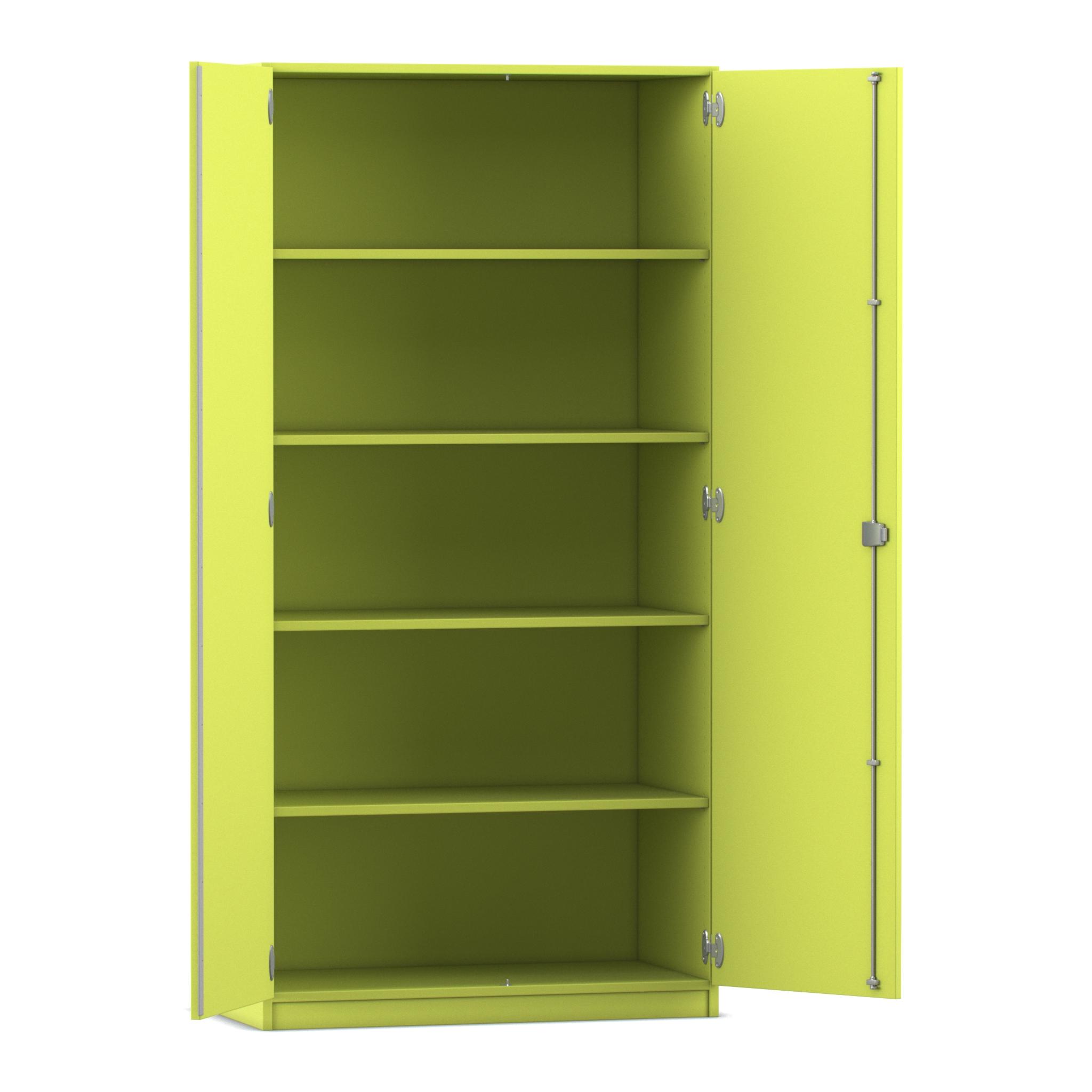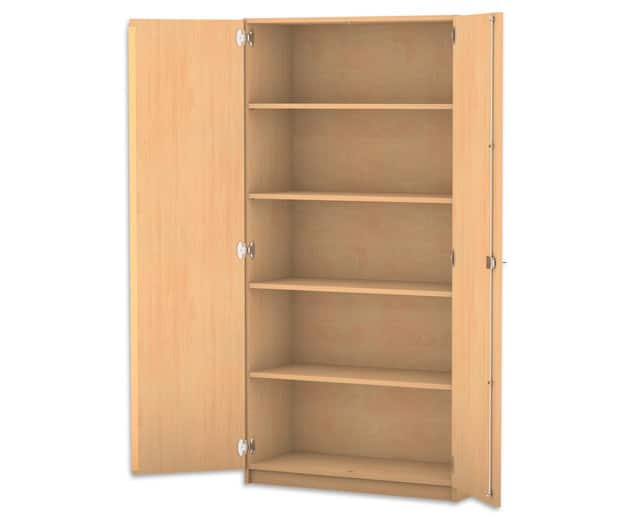 Onze meest verkochte kast, 2 draaideuren en 4 legplanken. Solide verlijmde kast met stevige scharnieren, cilinder slot en handgrepen.