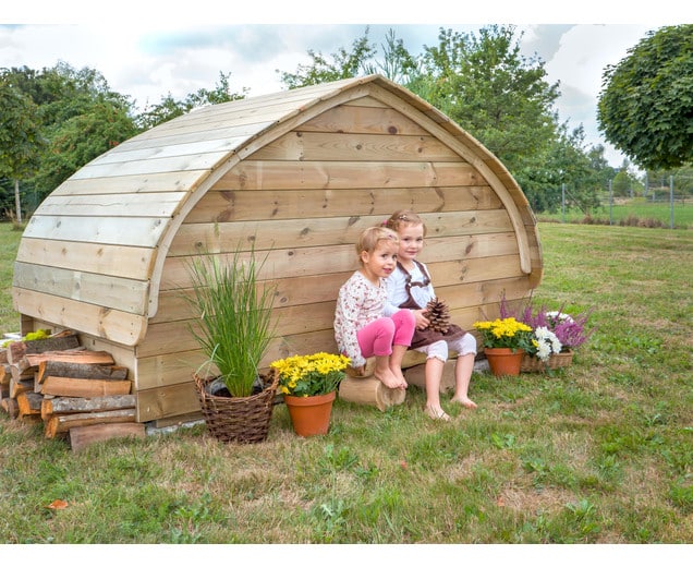 Prachtig houten Hobbit House of boshuis voor een fantasievol rollenspel. Duurzaam geïmpregneerd vurenhout, dit speelhuis is gemaakt in Duitsland.