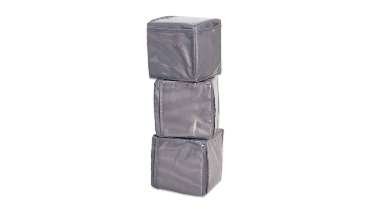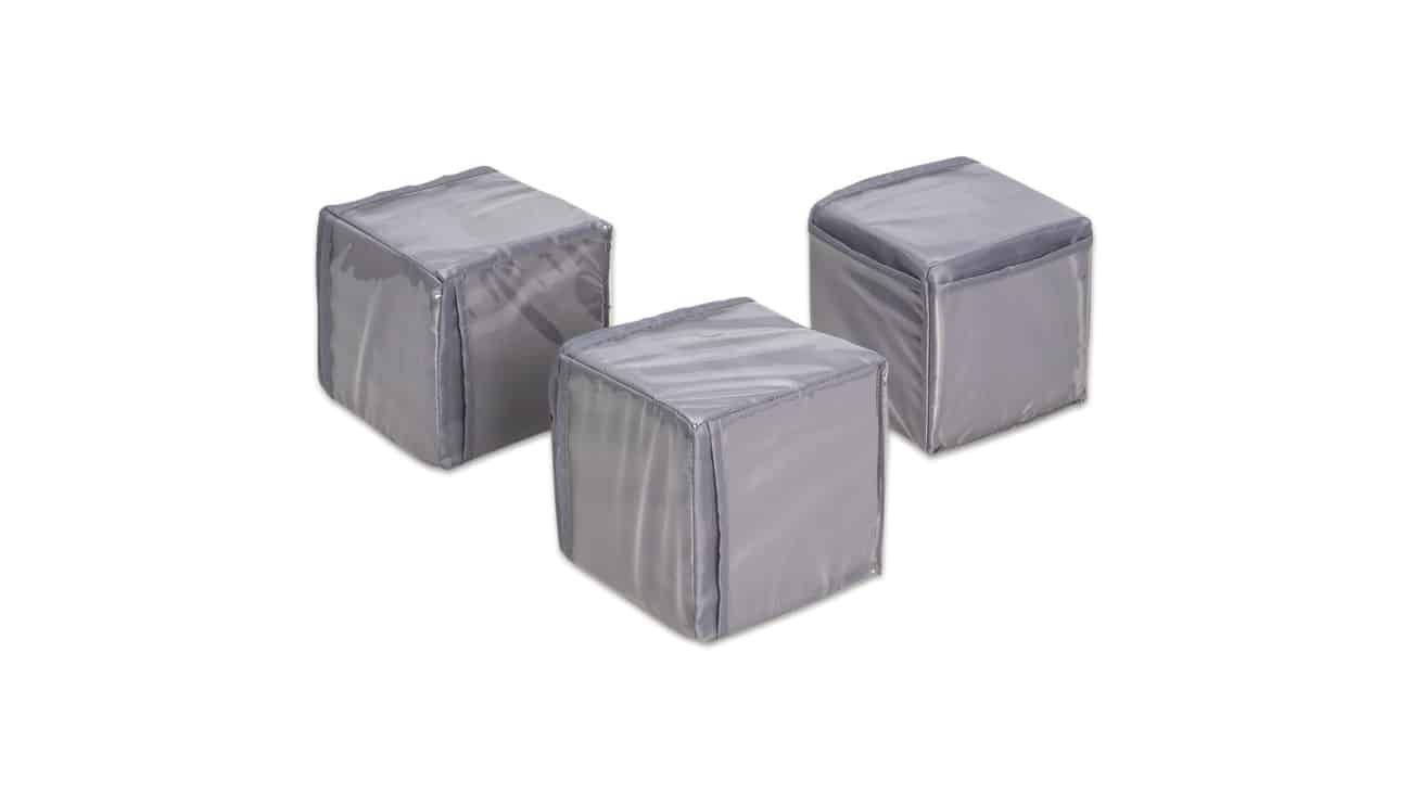 Grijze kubus 15x15x15 cm. Stevig zit- of speelelement dat past in moderne leeromgevingen.
