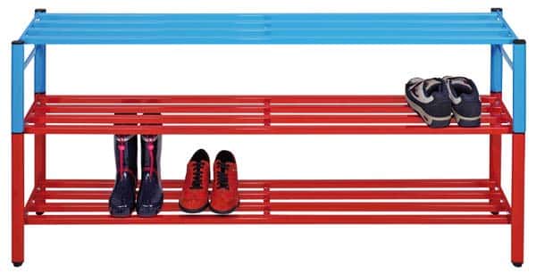 Laarzenrek 150 cm rood. Extra groot rek met meerdere ophangmogelijkheden.