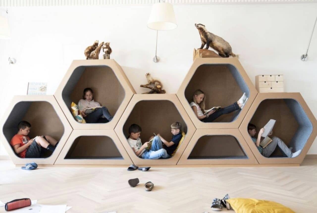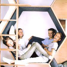 De LearnHONEY is het allerbeste stilte- & rustplekje in de school waar je kunt leren, lezen, loungen en je heerlijk in je eigen honingraat terug kunt trekken. Ideaal om de hallen en doorgaande gangen beter te benutten. Met een kussen of dekentje is dit je lievelingsplek waar je de nodige rust kan vinden en heerlijk een boekje kunt lezen in je eigen cocon/ nestje! De akoestiek van de ruimte word gedempt zodra je in de hexagonale plaats neemt. Het product past perfect bij een Biophilic design waarin we natuurlijke producten en planten gebruiken om de natuur naar binnen te halen, dit heeft een positief effect op ons welbevinden en daardoor op het gedrag.