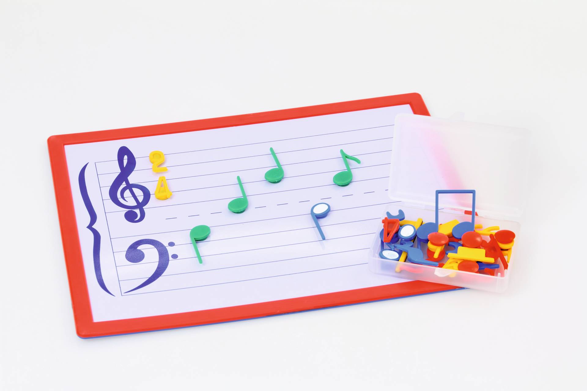 Magnetisch notenbord voor muzieklessen. Herbruikbaar en interactief leren noteren.