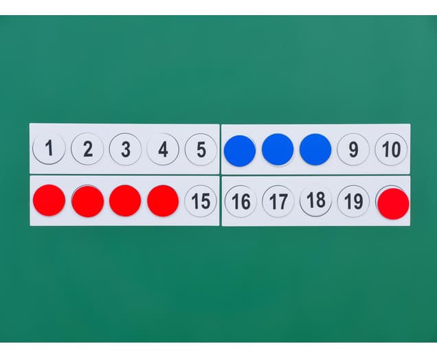 Voor kleinere nummers kan je slechts een deel van de magneetstrip gebruiken. Gebruik de blauwe en rode magnetische circuits om niet-numerieke rekenkundige bewerkingen te illustreren.