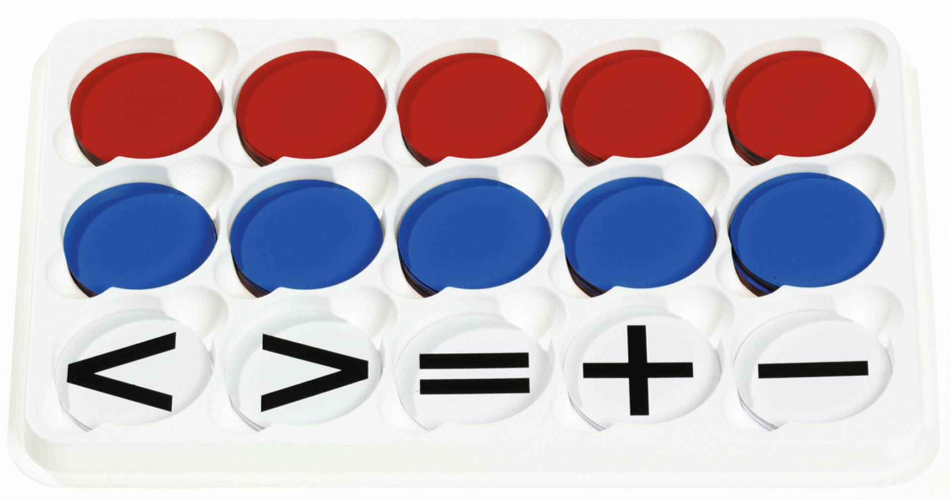 Set magnetische schijven (100 stuks, 5 cm diameter) en 20 rekentekens (5 cm diameter).