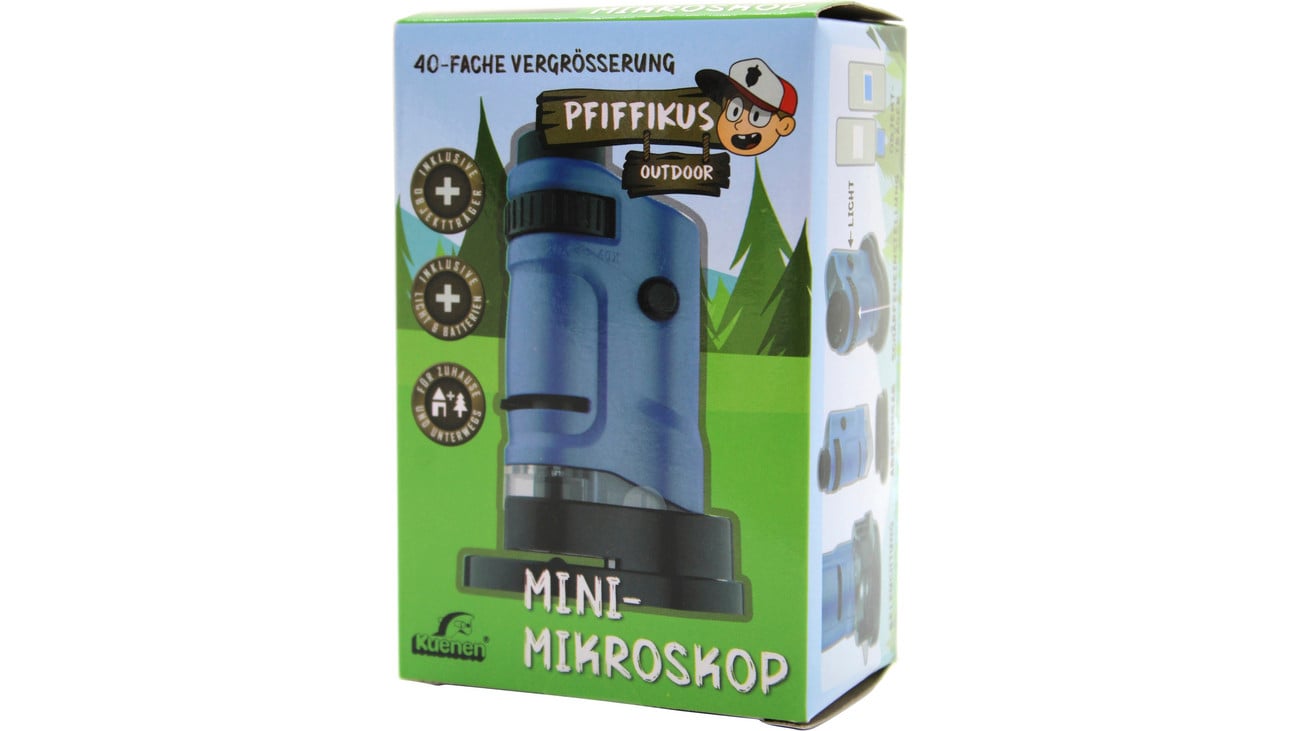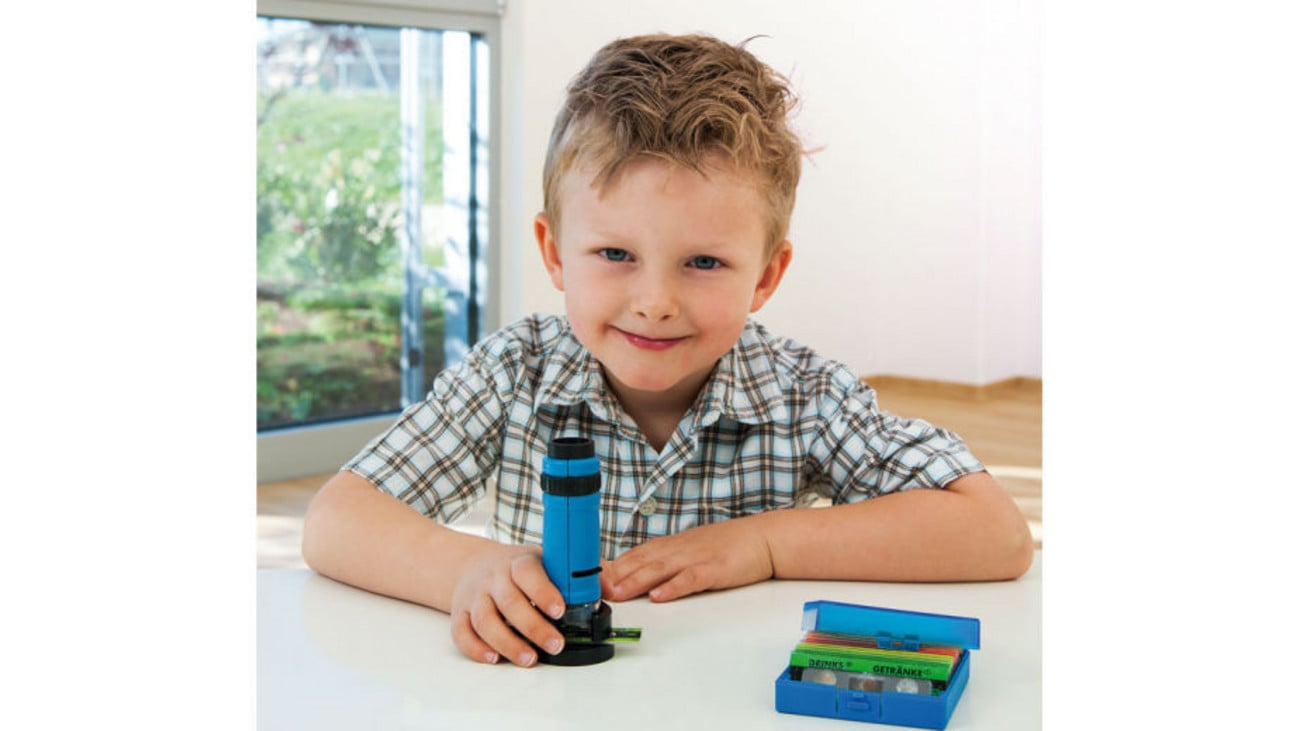 Met deze microscoop bekijken leerlingen objecten zoals huid, boomschors, insecten en nog veel meer met een vergroting van 20- tot 40-voudig. Met de meegeleverde houder kunnen ook kleinere objecten op objectglaasjes worden bekeken. Hiervoor wordt de mini-microscoop in de houder geplaatst, het object op het objectglaasje gelegd en vervolgens door het oculair bekeken. De fijne instellingen gebeuren via een zoom- en scherpstelwiel. De inschakelbare LED-verlichting maakt het nauwkeurig bekijken van objecten eenvoudiger. Zo wordt microscopie bijna net als met een echte microscoop.