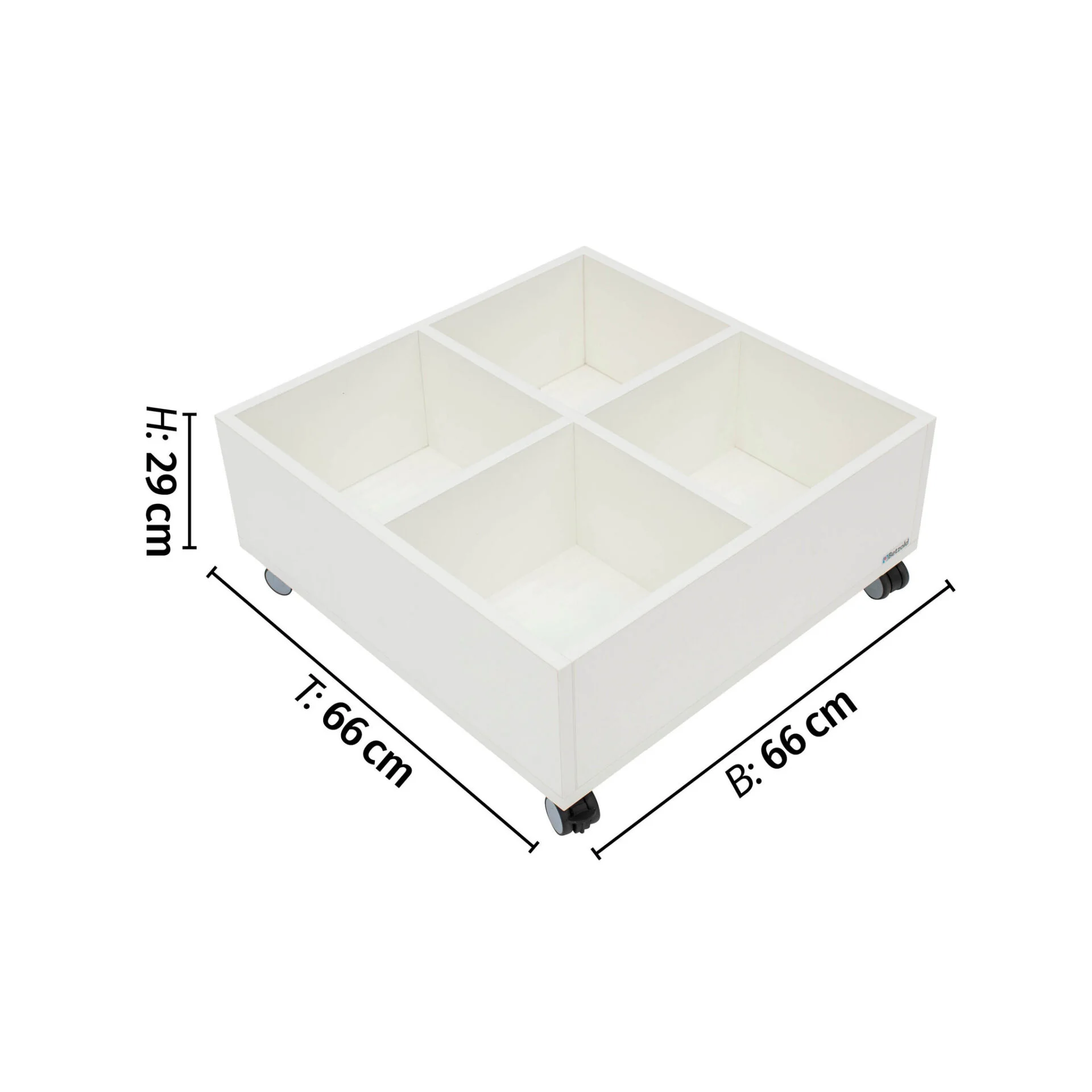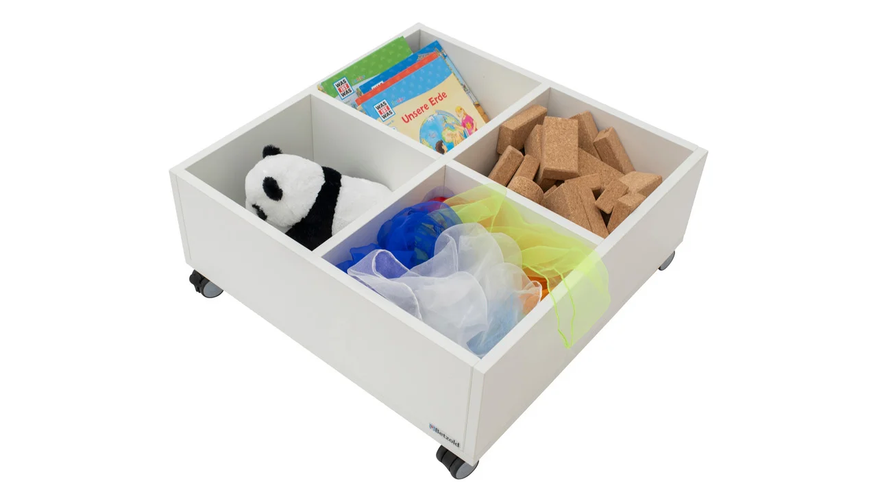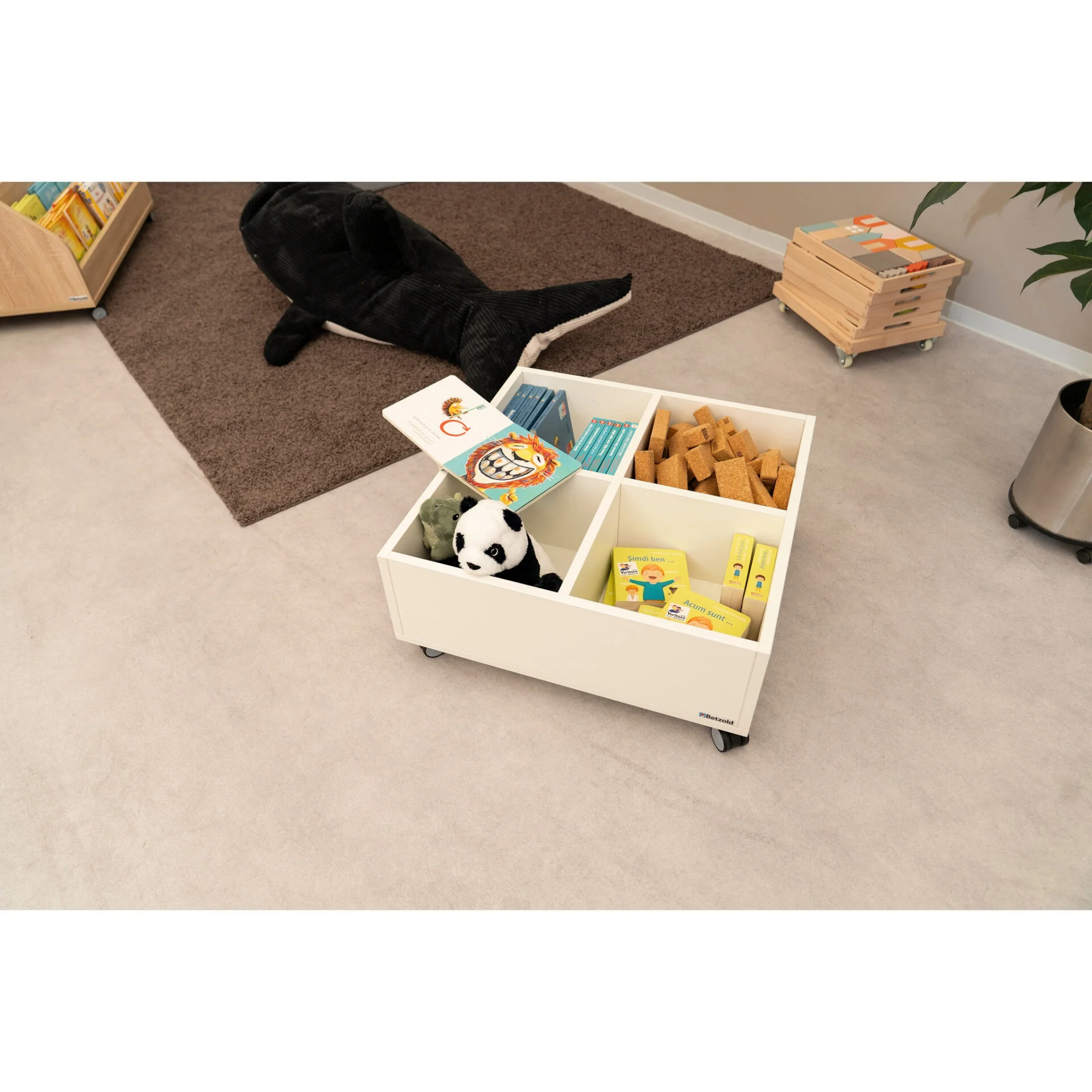 Deze mobiele prentenboeken opbergwagen is een praktische oplossing om boeken en speelgoed voor kinderen altijd binnen handbereik te hebben. Dankzij de 4 licht bewegelijke wieltjes kan hij moeiteloos van de ene kamer naar de andere worden gereden. De 2 vergrendelbare wieltjes zorgen ervoor dat de wagen veilig op zijn plaats blijft staan. Met een hoogte van slechts 29 cm kunnen zelfs de allerkleinsten zelfstandig bij hun favoriete boeken of speelgoed. De 4 open vakken zorgen voor overzichtelijke opbergruimte en nodigen uit om te snuffelen en te ontdekken. Of het nu gaat om prentenboeken, spelletjes of kleine schatten – alles vindt zijn plek en blijft goed zichtbaar en netjes opgeborgen.