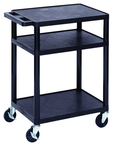 Multifunctionele trolley in zwart. Handig voor transport en opslag van materialen op school of kantoor.