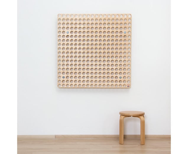 Het wandpaneel is ca. 77 x 77 cm en steekt bijna 8 cm naar buiten uit – een ideale oplossing voor kleinere ruimtes. Het bord heeft in totaal 324 gaatjes waarin de accessoires (niet meegeleverd) eenvoudig en veilig ingestoken kunnen worden.