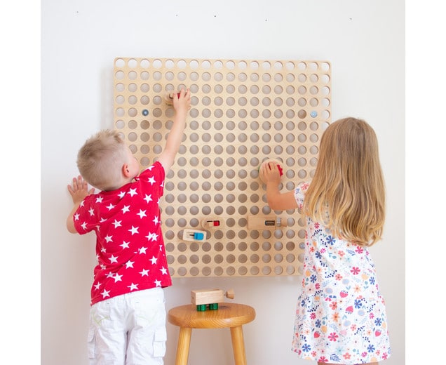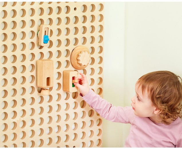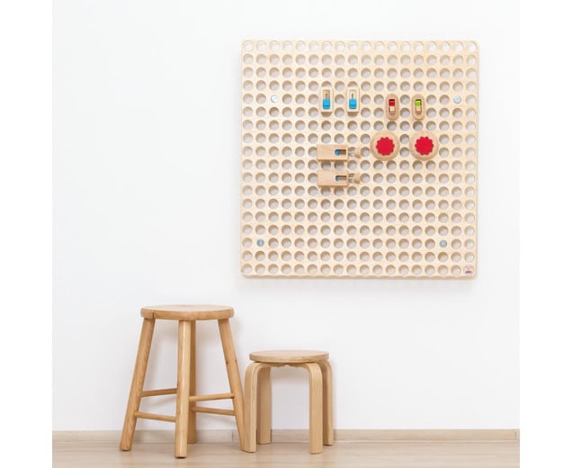 Dit robuuste berken multiplex wand paneel is de basis voor elk Muro-accessoire en kan op ieder gewenst moment opnieuw worden ingedeeld met de mooie accesoires of met andere leuke items. Pas het bord steeds weer aan de behoeften van de kinderen aan en bevorder zo de motoriek, de hand-oogcoördinatie en ook het leeftijdsgeschikte reactievermogen.