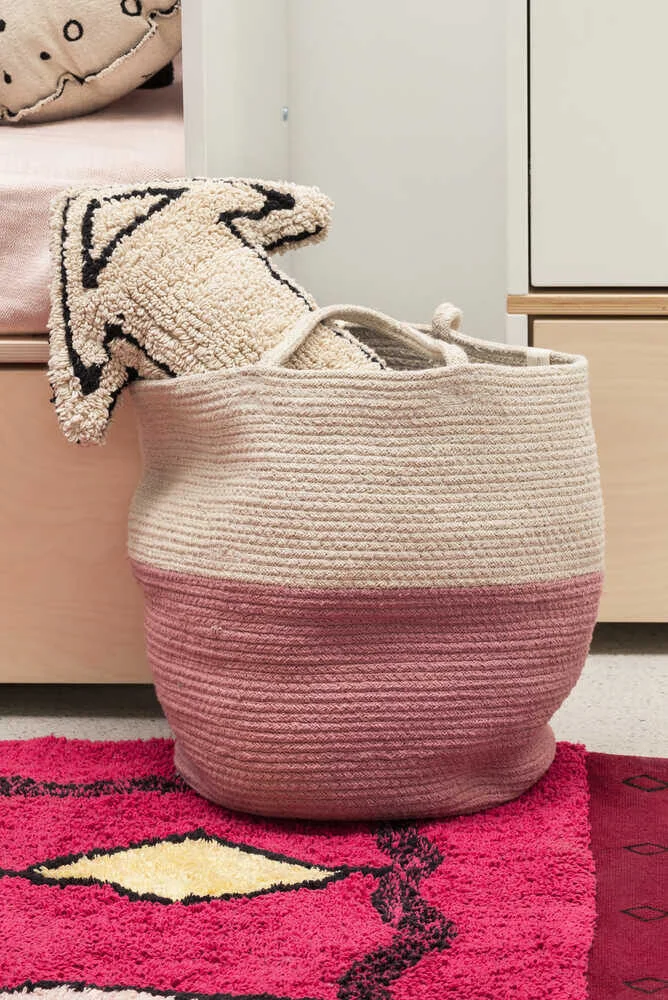 Wat je ook nodig hebt, deze ruime handgemaakte mand met handvatten zorgt voor een stijlvolle organisatie in je speelhoek. De handgemaakte afwerking, die rechtstreeks uit een Marokkaanse souk lijkt te komen, valt op door het zorgvuldig met de hand gevlochten koord. Gebruik hem bij de bouwhoek, in de poppenhoek of als opbergmand voor de kostuums. Hier kun je echt allerlei spullen in opbergen, van speelgoed tot boeken, noem maar op!