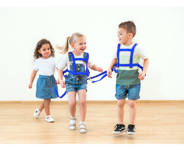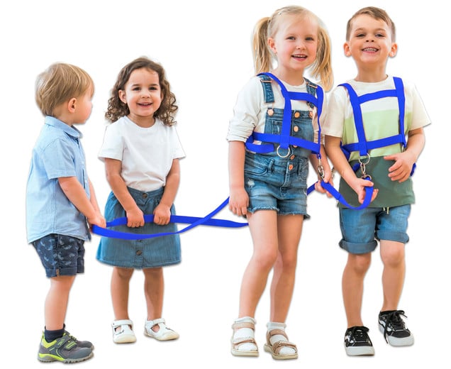 Het paardentuig is een van de absolute favoriete speeltjes van de kinderen. Met de paardenriem kunnen nu tot wel 4 kinderen samen spelen en spannende verhalen waarmaken. Het harnas is gemaakt van zacht nylon en kan worden aangepast aan de grootte van de kinderen. De twee harnassen zijn op een afstand van 40 cm met elkaar verbonden.