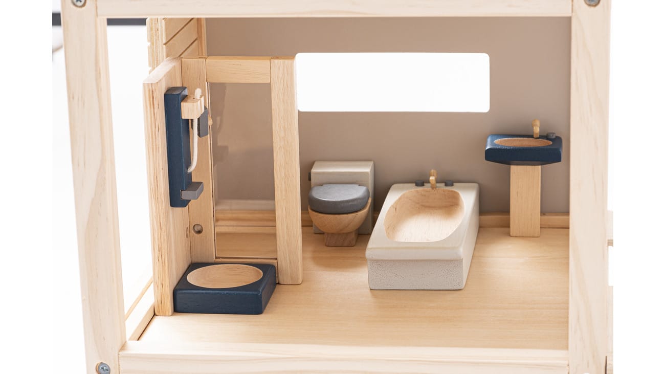Door de ruime opzet van het huis kan er van alle kanten gespeeld worden. Kortom, een poppenhuis goed voor urenlang speelplezier!