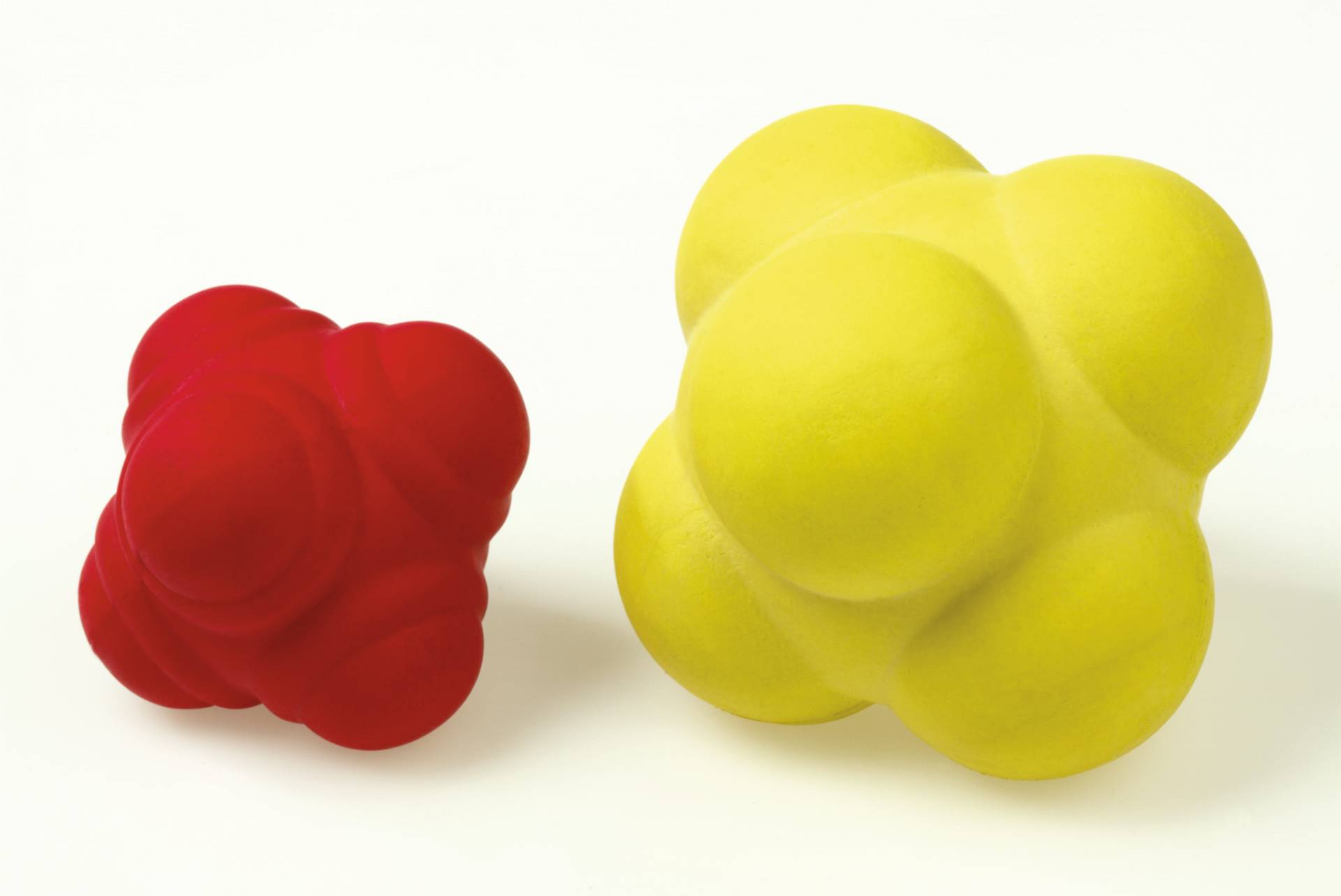 Reactie bal ∅ 24 cm, schuimstof, enkel degene die zich ect concentreert heeft kans deze gekke bal te vangen.