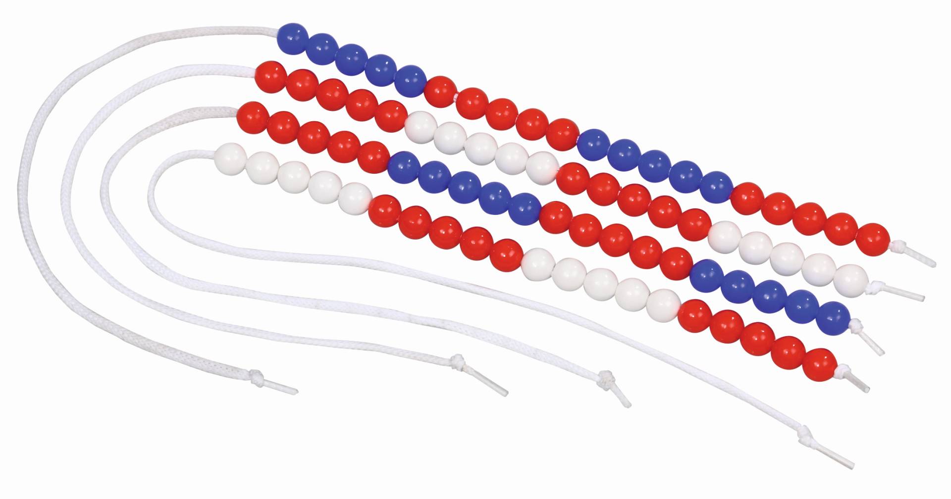 Rekenketting voor leerlingen, 50 cm lang polyester snoer, kralen met diameter 11 mm, kleuren rood en blauw.