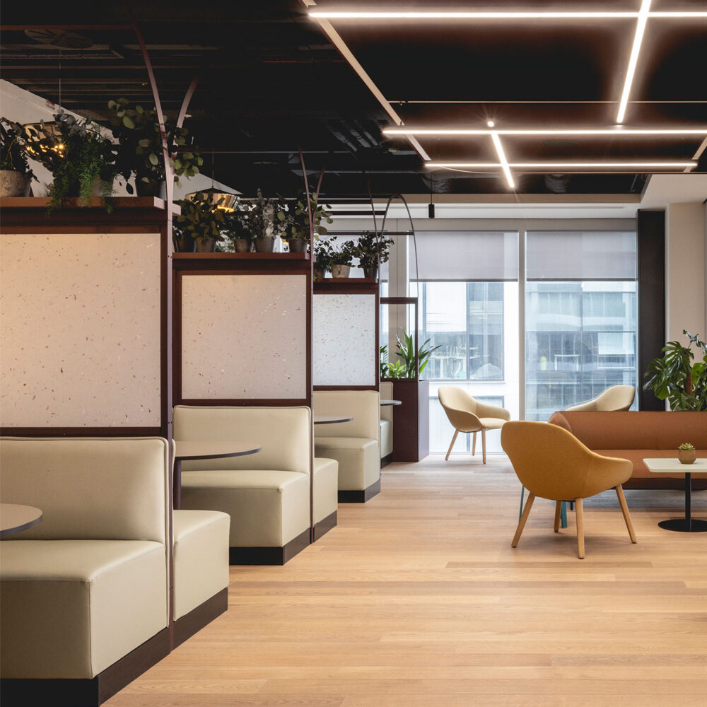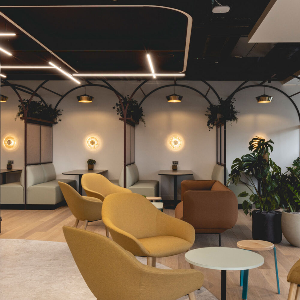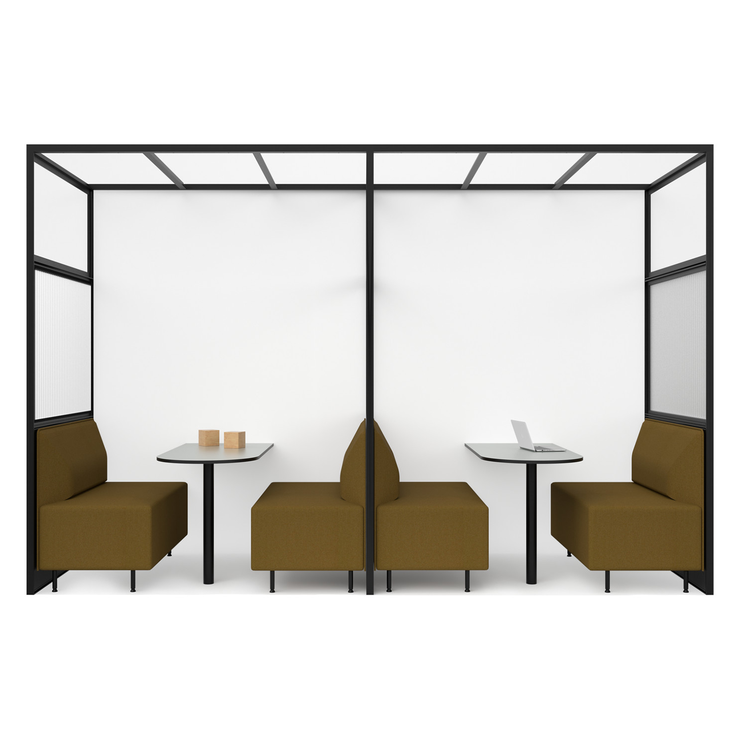 Met het room in room concept kunnen informele en privé vergaderzones worden gecreëerd, maar ook individuele cabines om geconcentreerd te werken. Ze kunnen naadloos worden geïntegreerd met onze bank- en tafelseries, inclusief een hoge tafel om de ervaring van een cabine te verbeteren.
