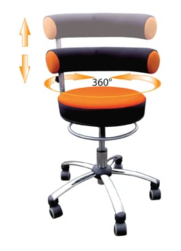 Geen rugklachten meer door de zit hoogte verstelling en een juiste ondersteuning van de 360 graden draaibare arm/rugleuning.
