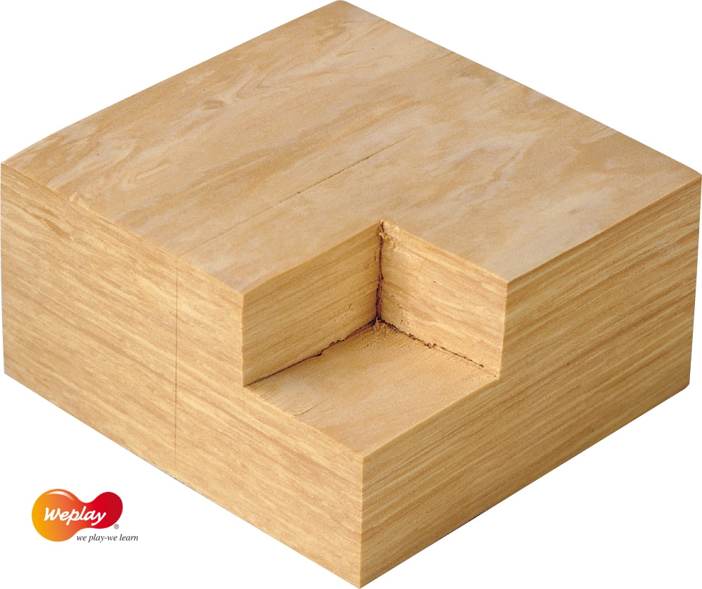 Kleinste bouwblokje 8 x 8 x 8 cm, grootste bouwblokje 16 x 16 x 8 cm
