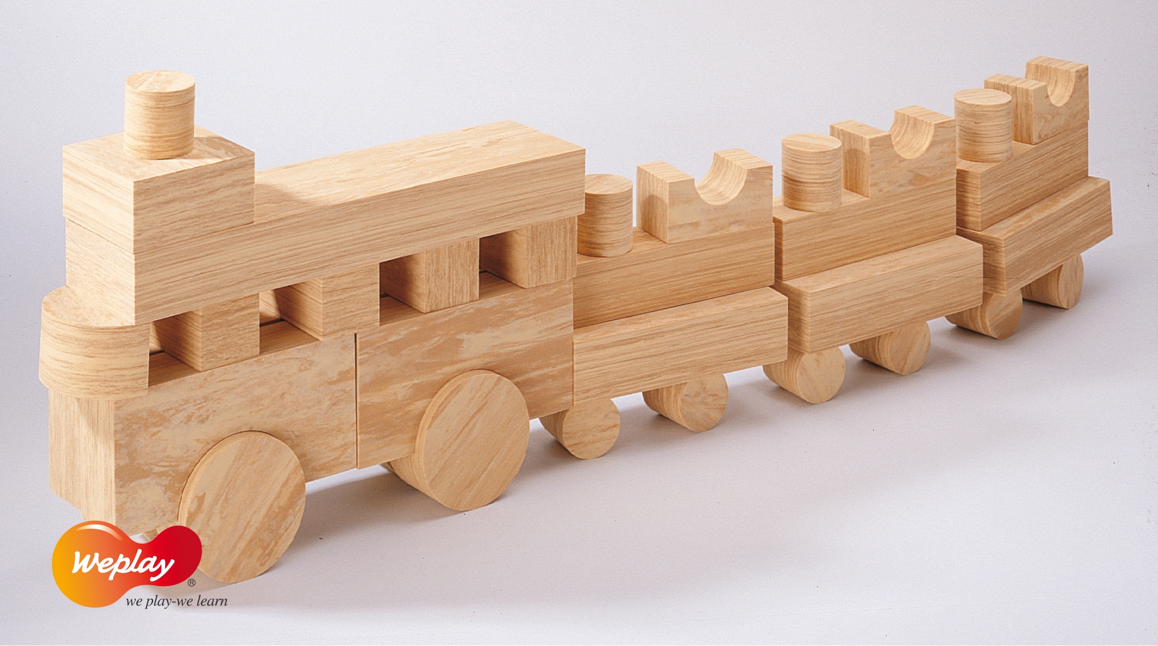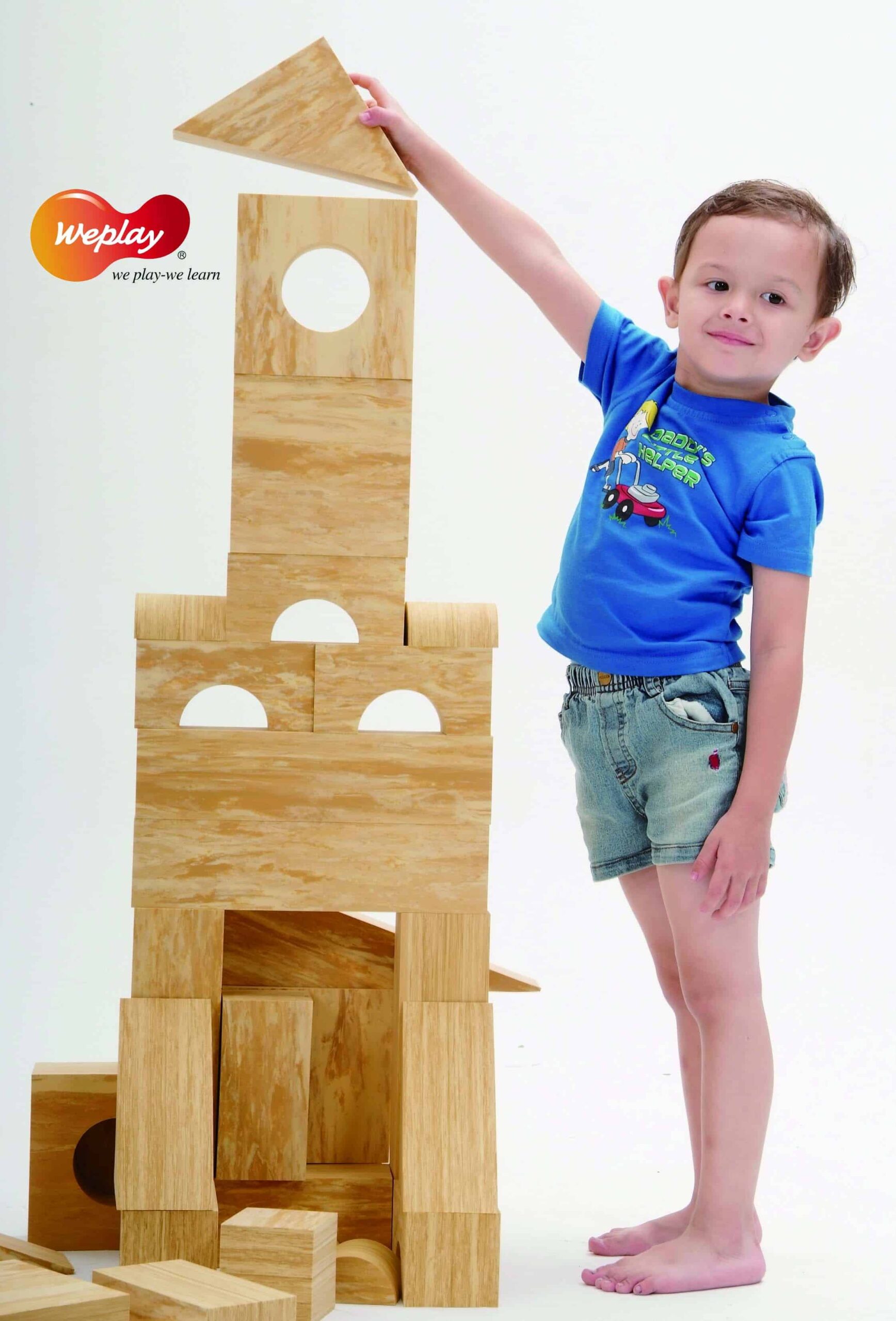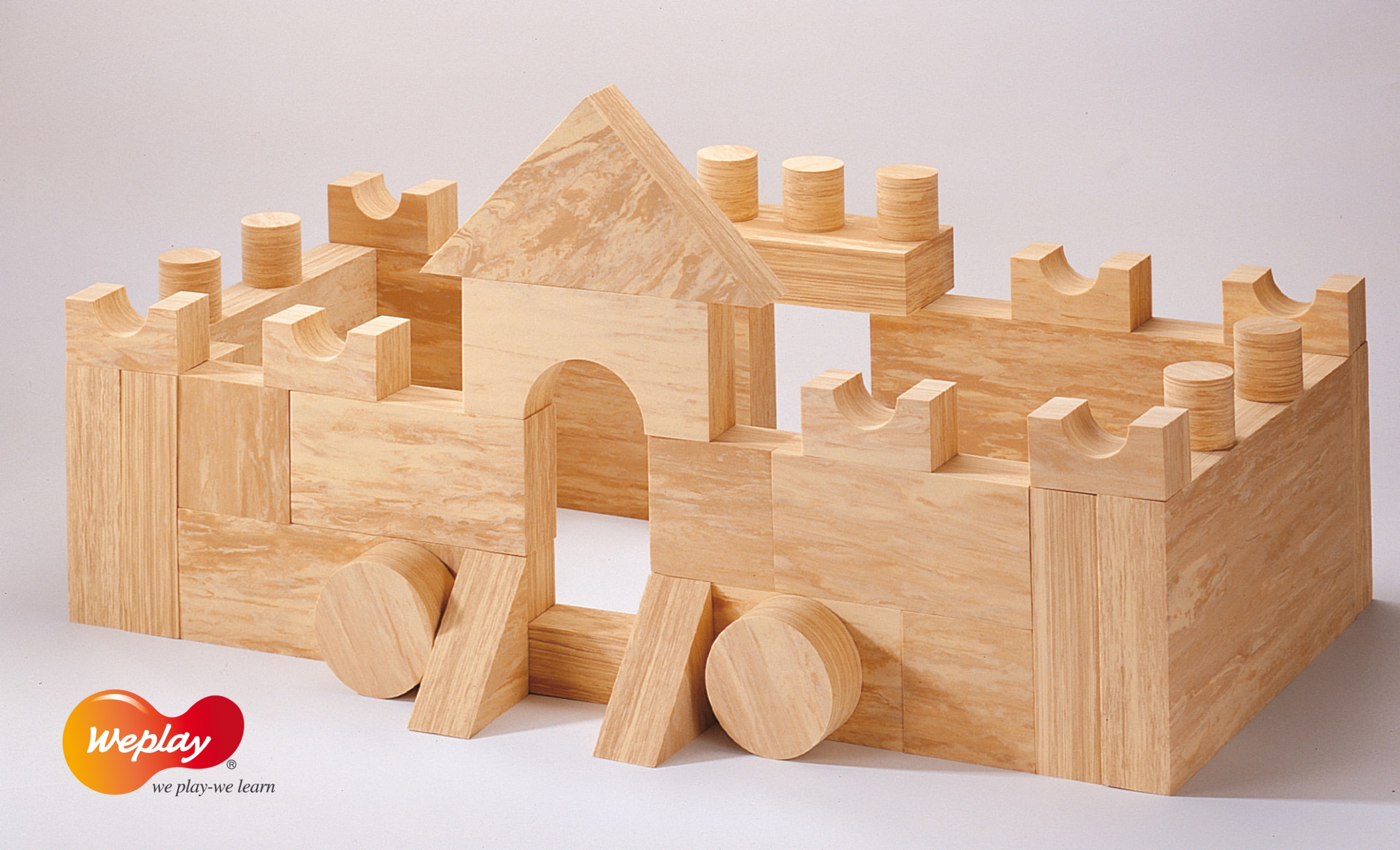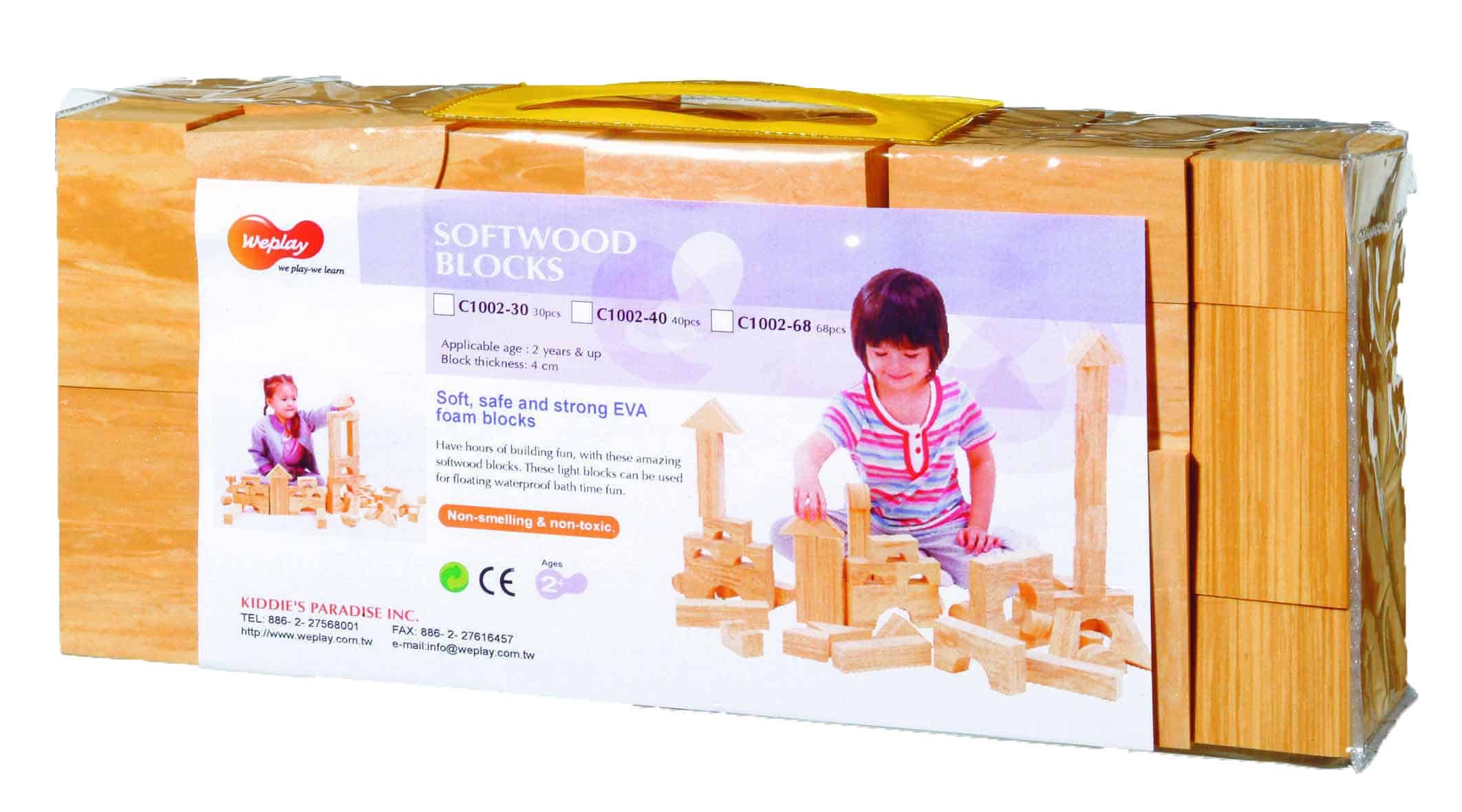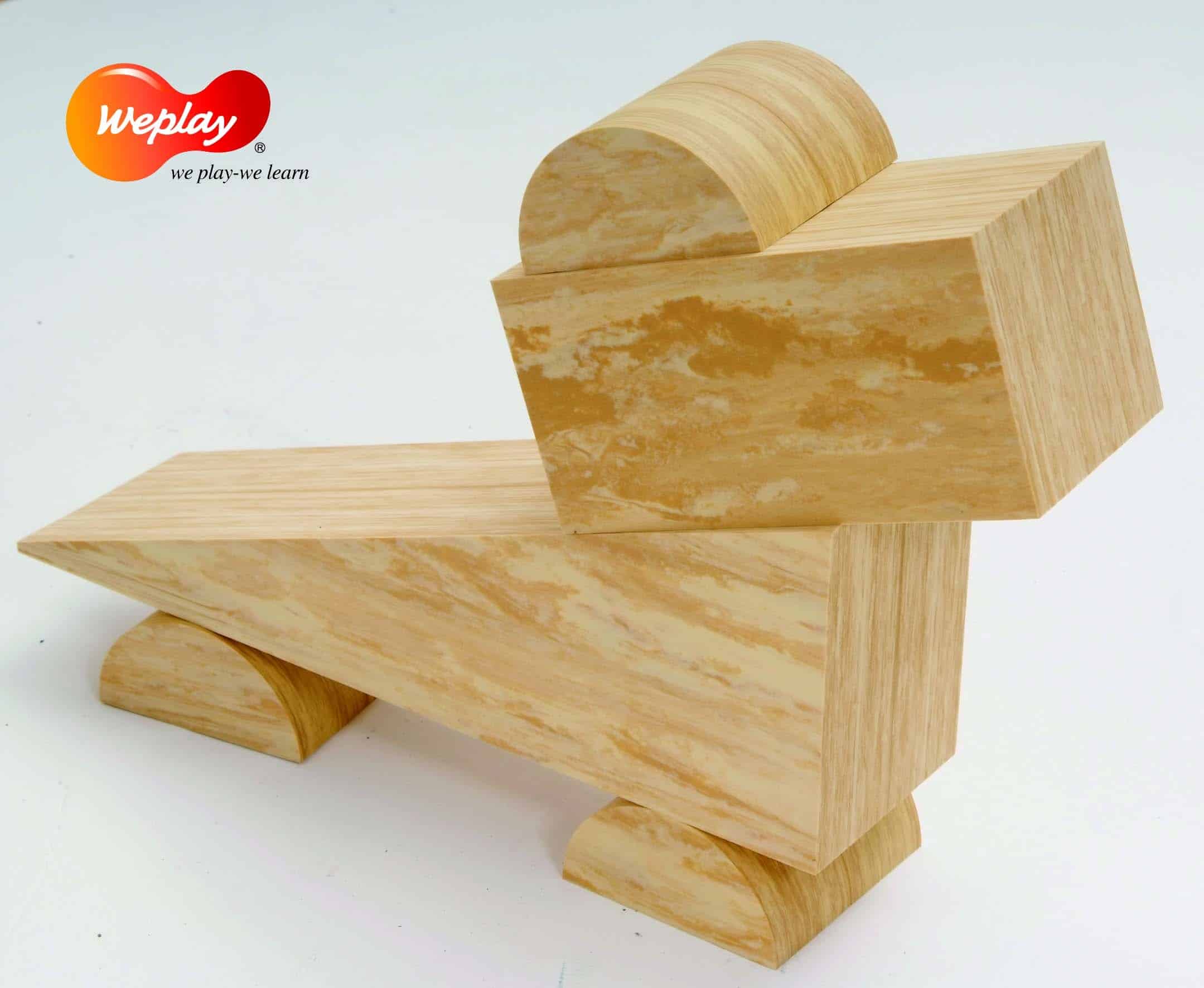 8 cm dikke blokken zien er uit als hout maar doen niet zeer, materiaal hoogwaardig EVA schuim, vanaf 2 jaar.