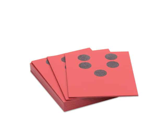 Op iedere kaart wordt met stippen een getal weergegeven. Door de stippen aan te raken ervaren de kinderen verschillen in hoeveelheid door de structuur van de stippen. Met deze nieuwe manier van ontdekken ontstaat er snel een concreet beeld van de hoeveelheid. Plaats vervolgens de kaarten met de nummers op goede volgorde of maak er kleine sommetjes mee. Als kinderen de getallen kennen is het rekenen makkelijker, en is de stap van tellen naar rekenen met getallen eenvoudiger. Deze set bevat 10 kaarten.