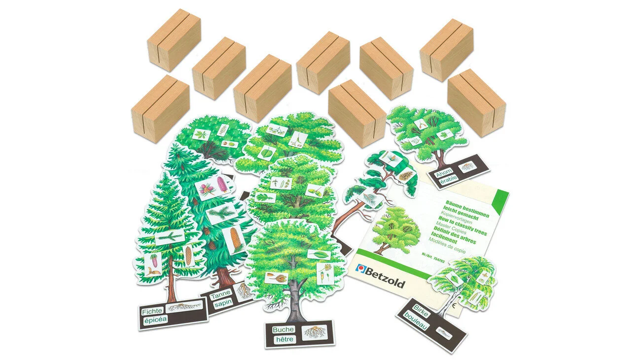 Elke boom heeft zijn eigen unieke uiterlijk. Aan de hand van de wortels, de hoogte, de stam, de kroon, de bladeren, de bloemen of de vruchten kan elke boom nauwkeurig worden geïdentificeerd. En met dit speciaal voor scholen ontwikkelde lesmateriaal is dat nu zelfs heel eenvoudig in de klas. Ongeacht het seizoen of het weer – de prachtig vormgegeven bomen verrijken elke les en stimuleren om goed te kijken. De schaalgetrouwe, stabiele bomen kunnen op elk moment zonder lange voorbereiding worden gebruikt. De magneetbordjes blijven ook perfect op het oppervlak van de bomen plakken wanneer ze worden omhooggehouden of neergezet. De bomen staan uitstekend in de 9 meegeleverde standaards van massief hout.