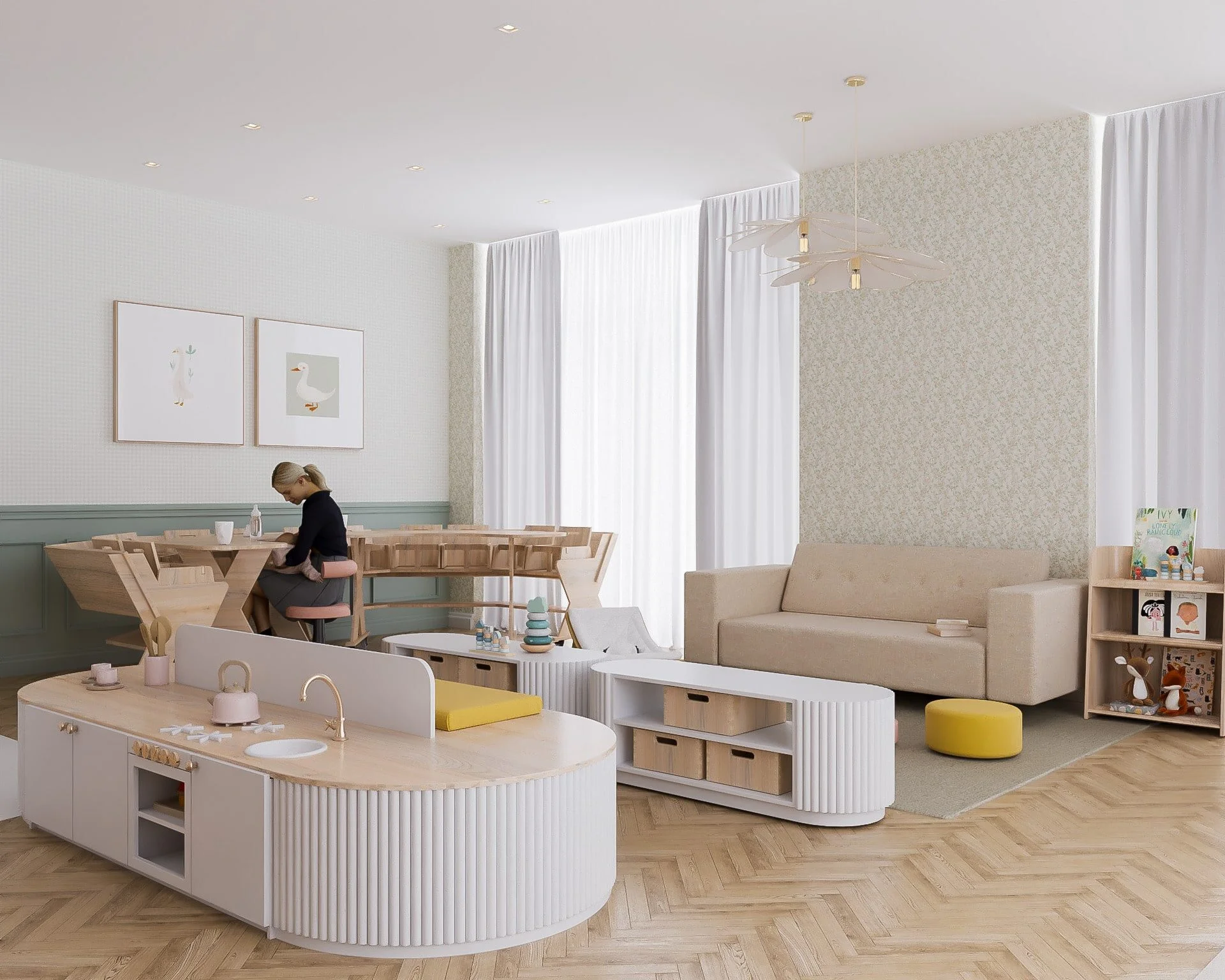Voor Saffana’s Kinderopvang welke binnenkort gaat uitbreiden in Almere hebben we een super gaaf interieur mogen ontwerpen. Een rustige klassieke stijl waar de warmte van de eigenaren en hun betrokken team goed in terug komt. Zowel voor de ouders, de lieve kinderen (& het enthousiaste team) een droom die uitkomt!