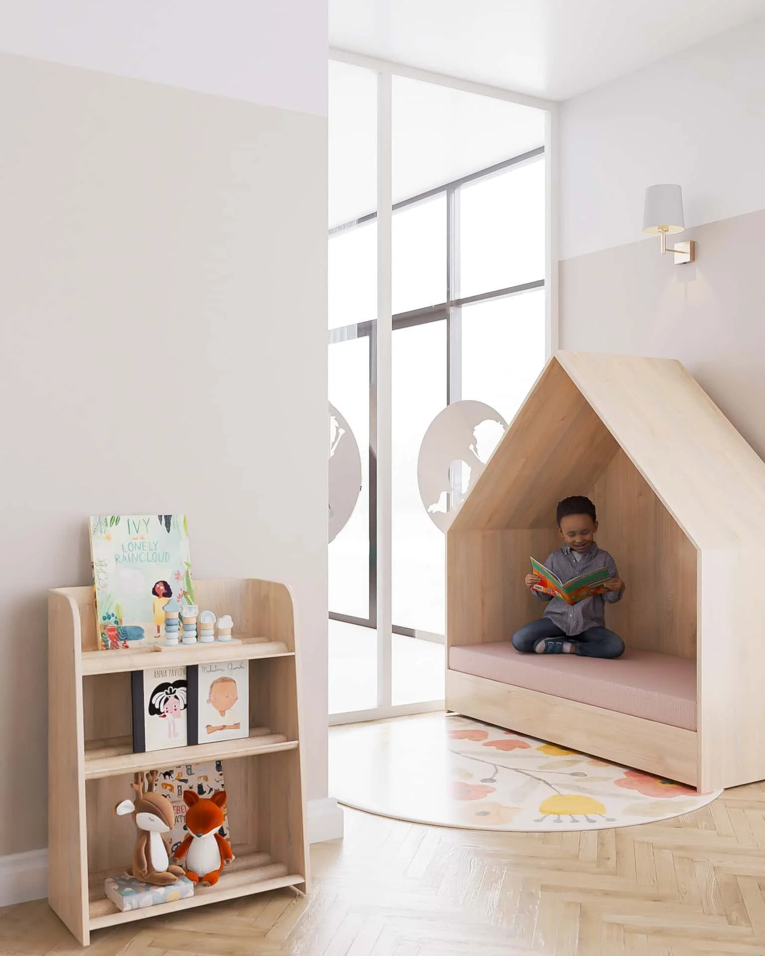 Zij starten hier met een baby- en peuter groep op een unieke loctaie midden in de natuur op het voormalig Floriade terrein. Vanuit de Reggio Emilia gedachte zijn de diverse hoeken gericht op wisselende thema’s en daagt het de kinderen uit om zich zelf te ontwikkelen door te ontdekken en te leren. Wij hebben op hun specifieke behoefte ingespeeld en een voorstel voor de kleurkeuze en indelingen van de maatwerk meubels bepaald. Super mooi geworden zijn de afgebakende verschoonplekken met een afgeronde muur welke doorloopt in wand en vloer.
