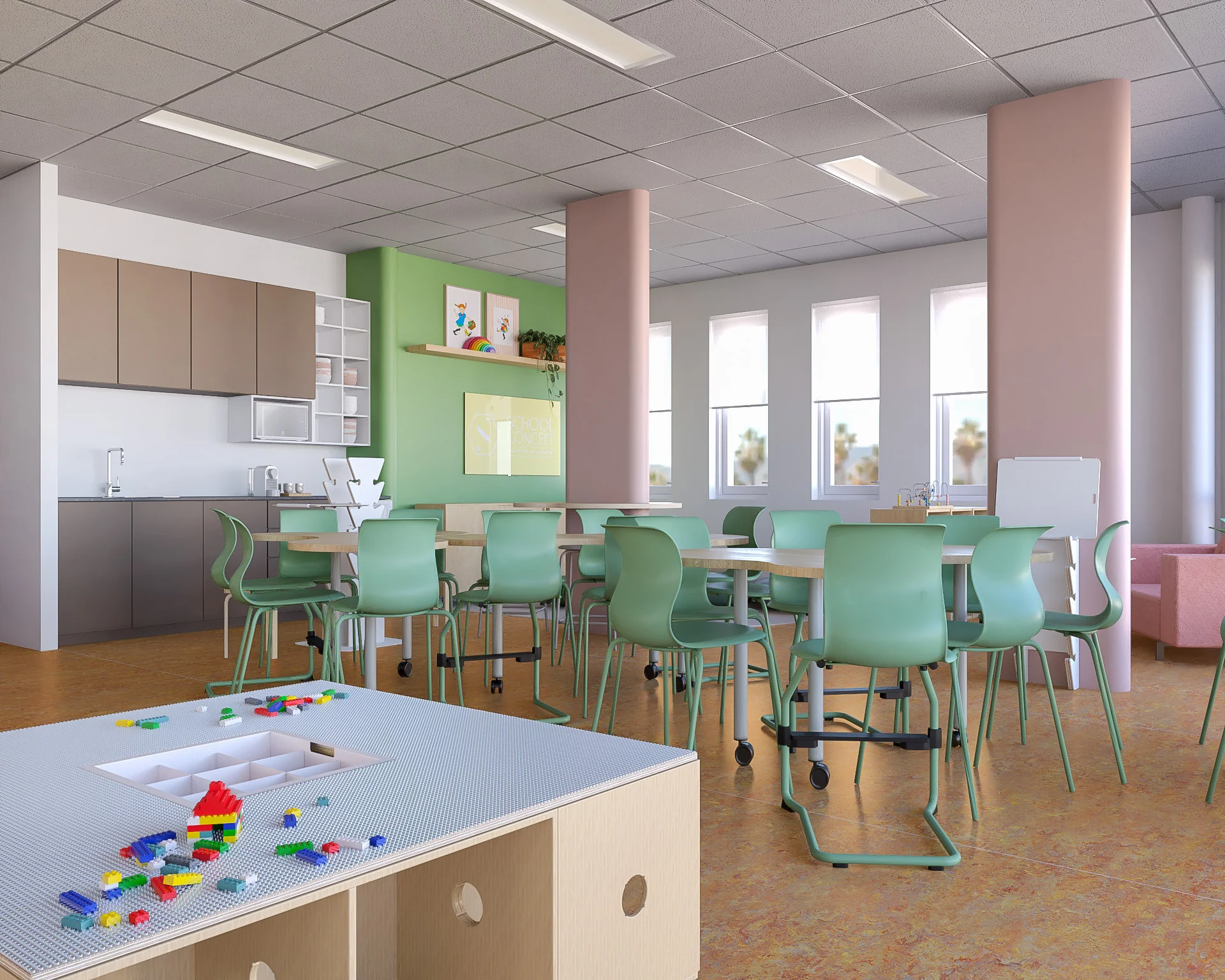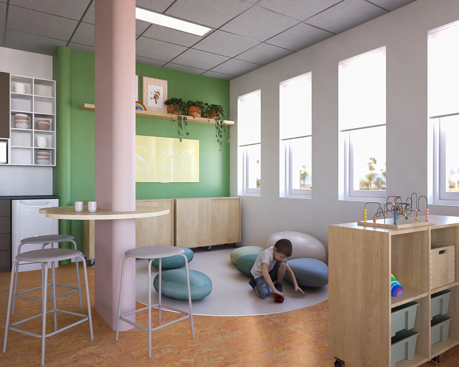 Voor de multifunctionele BSO ruimte waar kinderopvang Blosse gebruikt van maakt in IKC de Paperclip te Heerhugowaard mochten we meedenken voor een nieuw interieur passend binnen het Reggio Emilia filosofie concept. Samenzijn in een uitdagende omgeving met aandacht voor diverse zones.